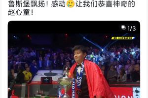 颜丙涛写道:亚洲第一位世锦赛冠军!五星红旗在克鲁斯堡飘扬!感动。让我们恭喜神奇的赵心童!
