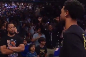 👬看见你就烦!哈利伯顿参加WWE偶遇布伦森 瞪了两眼摆手走开