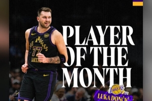 湖人球星詹姆斯更新IG动态转发东契奇月最佳海报,为队友送上祝贺。