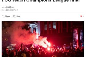 巴黎圣日耳曼队在欧冠半决赛次回合淘汰阿森纳,成功晋级欧冠决赛。这是该队历史上第二次闯入欧冠决赛。巴黎警方表示,在全市范围内发生多起小规模事件并逮捕了43人。据警方透露,受伤的球迷是在著名的香榭丽舍大道附近被一辆汽车撞到,具体情况正在调查中。