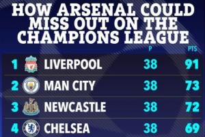 体育资讯05月08日讯 太阳报撰文表示,欧冠被淘汰后,阿森纳的噩梦没有结束,他们仍可能无缘下赛季欧冠资格。