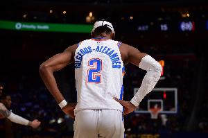 本场,亚历山大出战30分钟,投篮13中11,三分2中1,罚球11中11,砍下34分4篮板8助攻,正负值+51。