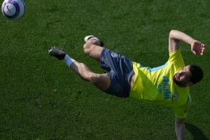 体育资讯5月8日讯 曼城中场科瓦西奇今天在Instagram晒出自己训练中侧身凌空射门的照片,并调侃这在游戏中要按L2+口来完成操作。