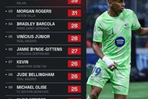 1. 亚马尔(巴塞罗那) - 56 次