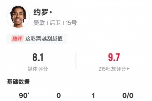 体育资讯5月9日讯 欧联杯半决赛次回合,曼联4-1毕尔巴鄂竞技,总比分7-1晋级决赛。本场比赛约罗首发出战,送出1次助攻,还有2次关键传球,4次解围,2次抢断,评分8.1。