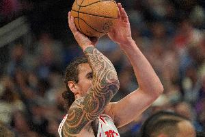 答(Steve Kerr):他本赛季罚球命中率46%。所以如果你觉得比赛需要,你就可以尝试一下。我觉得昨晚我们在进攻端完全卡壳了,七八分钟内只进了一个球,感觉必须得打破比赛节奏,所以才用了这种策略。