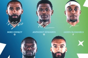 森林狼首发:康利、爱德华兹、麦克丹尼尔斯、兰德尔、戈贝尔。