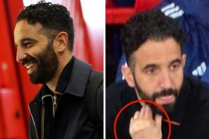 比赛开始时阿莫林的手还是正常的,上半场比赛曼联0-1落后,下半场回来阿莫林的指关节贴上了绷带