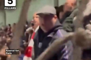 体育资讯5月9日讯 《每日邮报》报道,在阿森纳不敌巴黎圣日耳曼的欧冠比赛期间,一名阿森纳球迷被拍到发表种族歧视和恐同言论的丑态。