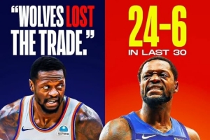 兰德尔过去出战的30场比赛,森林狼24胜6负!