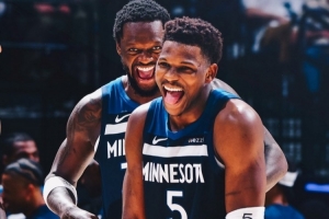 赛后森林狼官方晒出赢球海报,封面人物为爱德华兹和兰德尔,官推写道:“再赢一场!”
