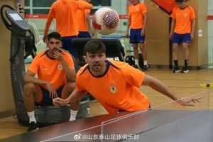 5月9日下午,受济南降雨天气的影响,山东泰山队赛前官方训练进行调整,除了守门员在场地训练外,其余队员转移到力量房,进行了室内赛前训练。