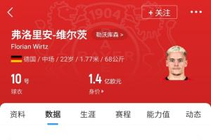 而目前22岁的维尔茨德转身价为1.4亿欧。吧友们认为维尔茨最终的转会费会是多少?