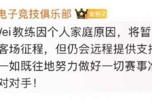 体育资讯5月10日讯 今日BLG官方发布:BigWei教练因个人家庭原因,将暂时缺席本次西安客场征程,但仍会远程提供支持与建议。我们会一如既往地努力做好一切赛事准备,全力以赴面对对手!