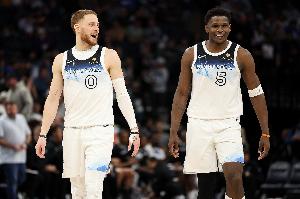 爱德华兹全场出战45分钟,23中12,其中三分10中5,罚球17中14,得到43分9板6助,正负值+3。