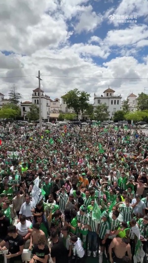 贝蒂斯晋级队史首个欧洲赛事决赛后,球员们回到主场接受成千上万的贝蒂斯球迷的欢呼💚🤍