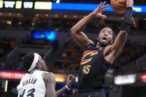 米切尔43分一如既往的攻击力,然而骑士今天赢球关键:75比46的篮板球。双塔的内线保底。