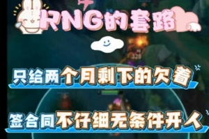 体育资讯5月10日讯 近日前职业选手huanfeng在直播中透露RNG欠薪套路:只给两个月工资剩下欠着,然后无条件开人。