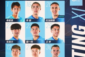2-张卫 8-周大地9-德·列昂索 10-萨卡里亚 13-彭鹏(GK) 14-赵石(GK) 46-申桓铭 49-张皓楠(GK) 56-江唯一