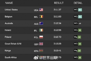 美国、比利时、澳大利亚、爱尔兰、波兰、英国、肯尼亚、南非八支队伍获得明年世锦赛的参赛资格。