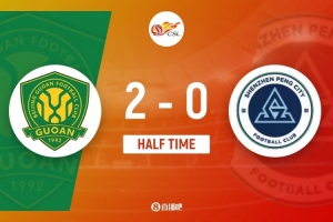伤停补时2分钟。上半场比赛结束,北京国安2-0深圳新鹏城。