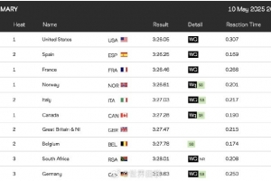 美国、西班牙、法国、挪威、意大利、加拿大、英国、比利时、南非、德国获得明年世锦赛该项目参赛资格。