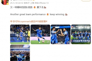 体育资讯5月10日讯 中超联赛第12轮,上海申花主场4-0战胜青岛西海岸。