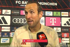 体育资讯05月11日讯 拜仁本赛季最后一个联赛主场2-0战胜门兴,颁奖典礼后凯恩接受采访。
