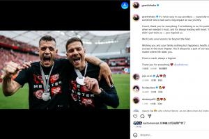 体育资讯5月11日讯 勒沃库森中场扎卡更新社媒,祝福了即将离队的哈维-阿隆索。