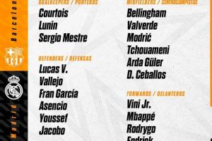 前锋:7-维尼修斯、9-姆巴佩、11-罗德里戈、16-恩德里克、21-迪亚斯、维克托-穆尼奥斯