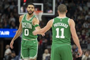 本场比赛,双方在外线的投射表现差距悬殊,其中凯尔特人全队三分球40中20,命中率高达50%,其中塔图姆和普理查德都有5记三分球入账,而尼克斯这边只有25中5,命中率仅20%,这一项数据凯尔特人就赢了45分。
