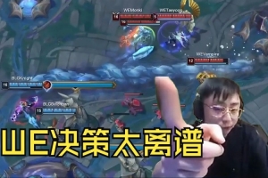 在第一局BLG大优势浪好几波险些被WE翻盘,但一波大团直接击溃WE推平基地,水晶哥吐槽:WE决策太离谱,这怎么可能一波!
