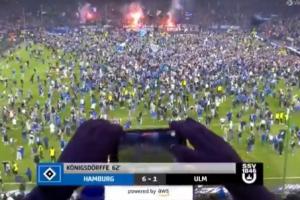 比赛结束的哨响后,汉堡球迷涌入场内疯狂庆祝升级。
