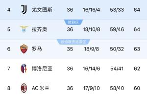 体育资讯05月11日讯 意甲第36轮,尤文遭拉齐奥1-1绝平,两队同积64分,意甲争四形势依旧扑朔迷离。