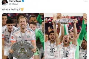 凯恩在拜仁的夺冠庆典上第一条动态↑(就是这个感觉!)
