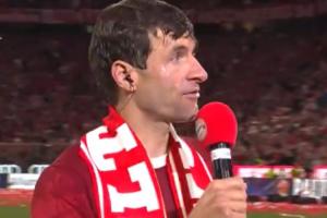 体育资讯05月11日讯 拜仁赛季最后一个主场,球队2-0战胜门兴后捧起沙拉盘。即将离队的35岁功勋老将、二娃穆勒在告别演讲中冷不丁讲了个玩笑。
