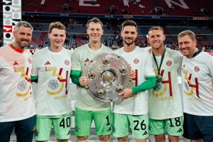 体育资讯5月11日讯 拜仁本轮2比0击败门兴,全体将士在主场尽情享受夺冠的喜悦。