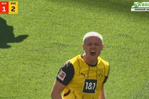 比赛第43分钟,格罗斯助攻,莱尔森打远角破门,多特2-1反超勒沃库森。