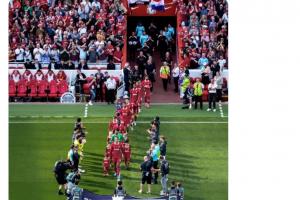 利物浦官方发布了这一场景的图片,并配文:为英超冠军列队致敬。