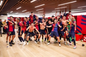 巴萨球员赛后在更衣室庆祝胜利,《世界体育报》更新社媒动态,晒出球员们在更衣室的合照。