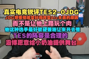 赛后B站up“真实电竞”锐评比赛:JDG想要彻底变好得改变Ale本质的原因,而不是让他上路玩个肉,他这种选手最好软硬兼施让朱开去整,TES的阵容是合理的,滔博愿意给小奶油提供舞台。