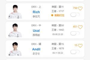 体育资讯5月12日讯 在近期的LCK联赛中DRX战队目前排名联赛第九,而值得一提的是队内五名选手的韩服排位分并不低,人均1700左右,皆是韩服前50名的选手。