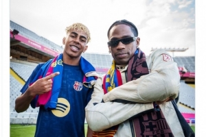 此役巴萨球员身穿美国歌手斯科特联名球衣出战,巴萨官方社媒晒出亚马尔与斯科特的合照,并配文:“新晋时尚组合。”