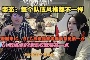 姿态:每个队伍风格都不一样,看起来IG,BLG应该是参考选手意见多一点,AL教练组的话语权就要高一点。