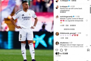 姆巴佩在个人社媒晒出本场照片,配文写道:“虽然伤心,但是我们会重振旗鼓,Hala Madrid!”