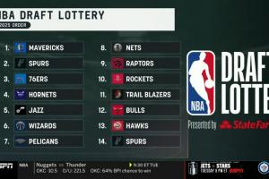 体育资讯05月13日讯 2025年NBA乐透抽签仪式在芝加哥进行,独行侠以的1.8%的概率喜提状元签,榜眼签归属马刺,76人抽中了探花签,黄蜂抽中了第四顺位。