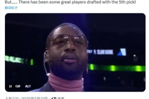 对此,爵士小老板、NBA名宿韦德发推写道:“但是,第五顺位确实出过不少伟大的球员。”并配上了自己的表情包。
