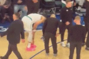 中场时塔图姆脚踝不舒服 进行简单的脚踝训练