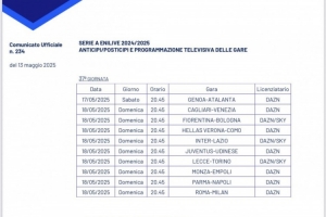体育资讯5月13日讯 意甲官方公布了2024-2025赛季联赛第37轮开球时间,除了热那亚-亚特兰大的比赛将在周日举行,其余9场统一在周一凌晨开球。具体时间如下(北京时间):