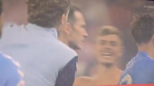 赛后考文垂主帅兰帕德难免失落,一球迷找到他想要合影,兰帕德拦下手机表示了拒绝。
